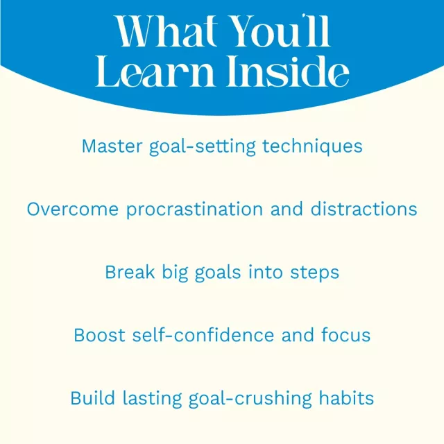 • Practical Tips to Stay on Track: Learn how to overcome procrastination, distractions, and other sneaky goal blockers.