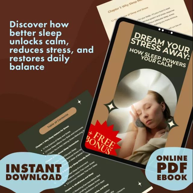 Don’t let stress control your nights—or your days. Download Dream Your Stress Away: How Sleep Powers Your Calm today and start building the restful, balanced life you deserve. Instant access means you can begin your journey tonight.