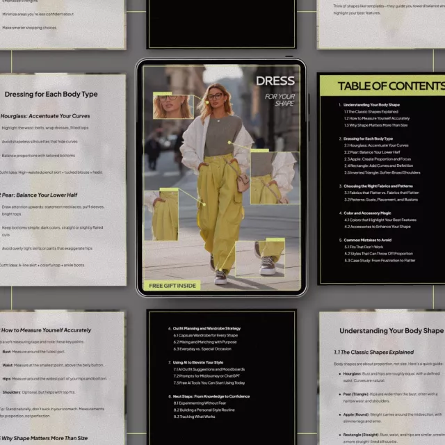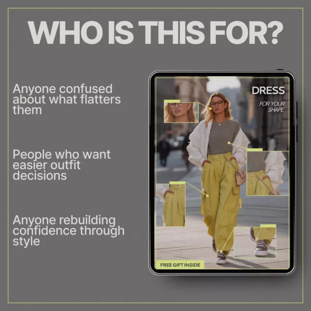 This guide is perfect for anyone who feels overwhelmed by fashion advice, struggles with fit, or wants a more intentional wardrobe. Whether you’re rebuilding your style, refining it, or simply curious about what truly flatters you, Dress for Your Shape meets you where you are.