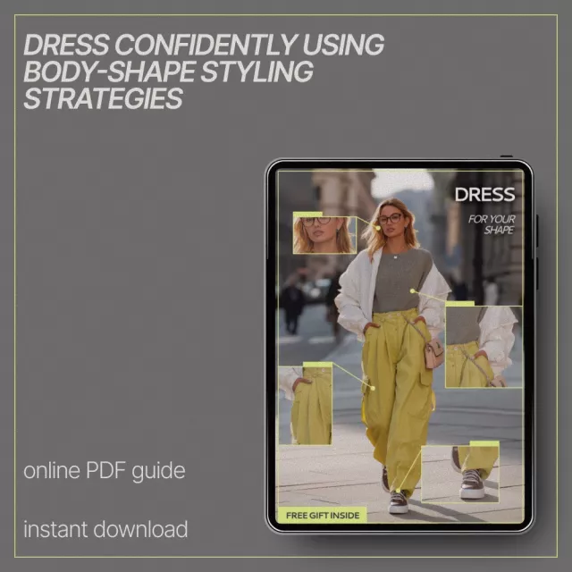 Dress for Your Shape is a digital download you can access instantly. Start dressing with clarity, confidence, and purpose today—add it to your cart and transform the way you see your wardrobe.