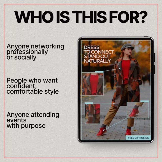 This ebook is for professionals, creatives, entrepreneurs, job seekers, and anyone who attends networking events and wants to feel more prepared without overthinking their wardrobe. Instead of generic fashion advice, it focuses on clarity and psychology: how clothing supports confidence, approachability, and credibility.
