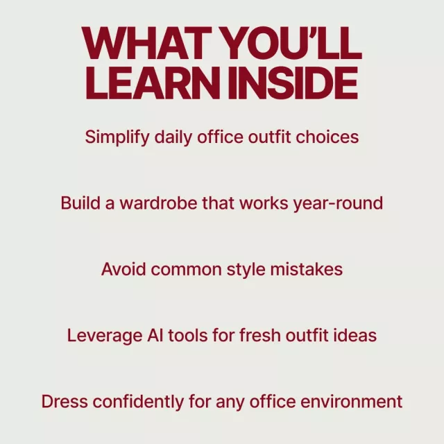 What makes it different? Unlike other digital resources, Dressing Smart for Office Life provides actionable, easy-to-follow advice that combines timeless fashion principles with modern, practical tips. It goes beyond simple outfit suggestions and dives into building a versatile, sustainable wardrobe that works across seasons, plus includes unique insights like how to leverage AI tools for office styling.