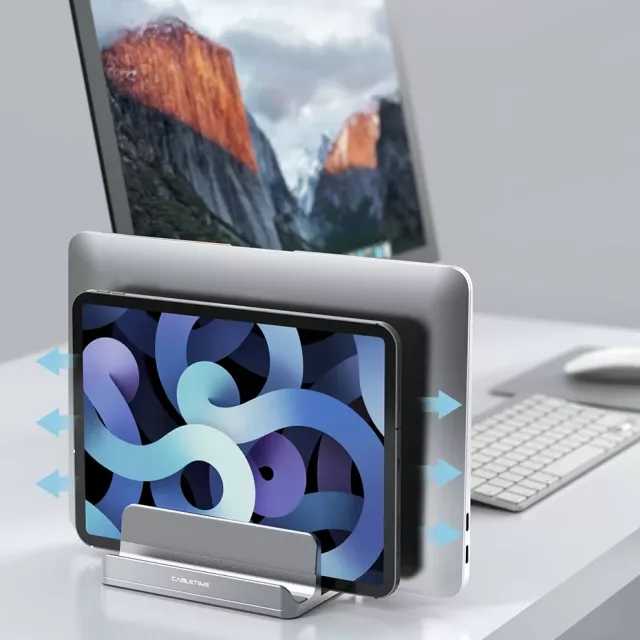 Designed with a 4-in-1 multifunctional design, this stand can hold two laptops, a laptop and a tablet, or even a laptop and your phone side-by-side. Its adjustable width ranges from 0.5 inches to 1.65 inches, ensuring a perfect fit for most devices — from ultrathin MacBooks to large gaming laptops. The vertical design not only saves valuable desk space but also improves airflow around your devices, boosting heat dissipation and allowing for longer, more efficient use.