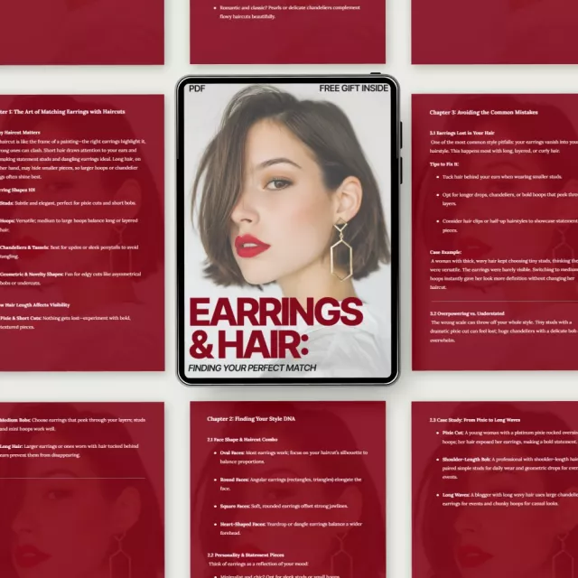 Choosing earrings shouldn’t feel like guesswork. Earrings & Hair: Finding Your Perfect Match is a beautifully structured digital guide that shows you exactly how to elevate your look by pairing earrings with your haircut the smart way. Whether your hair is short, long, layered, or constantly changing, this guide breaks down how to pick the right earrings for your haircut with clarity, style, and confidence. Designed for real life and real wardrobes, it blends fashion fundamentals with modern tools so you can make flattering choices every single time.
