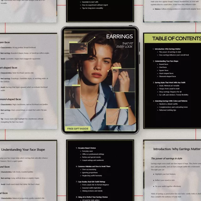 Unlike generic fashion guides, Earrings That Fit Every Look combines practical styling rules, real-life examples, and modern AI-powered inspiration in one concise, actionable resource.