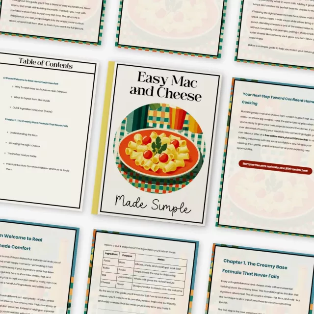 If you’re ready to create rich, creamy, homemade comfort food without stress, Easy Mac and Cheese Made Simple is waiting for you. Download your copy now and turn your kitchen into the coziest place in the house with your new go-to easy mac and cheese recipe from scratch.