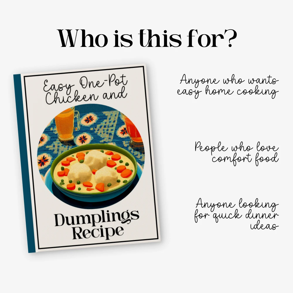 This digital resource is perfect for beginners, busy families, students, and anyone who loves comfort food but wants an easy one pot chicken and dumplings recipe that works every time. Whether you’re cooking for yourself or a hungry family, this guide helps you serve a comforting, homemade meal without stress.
