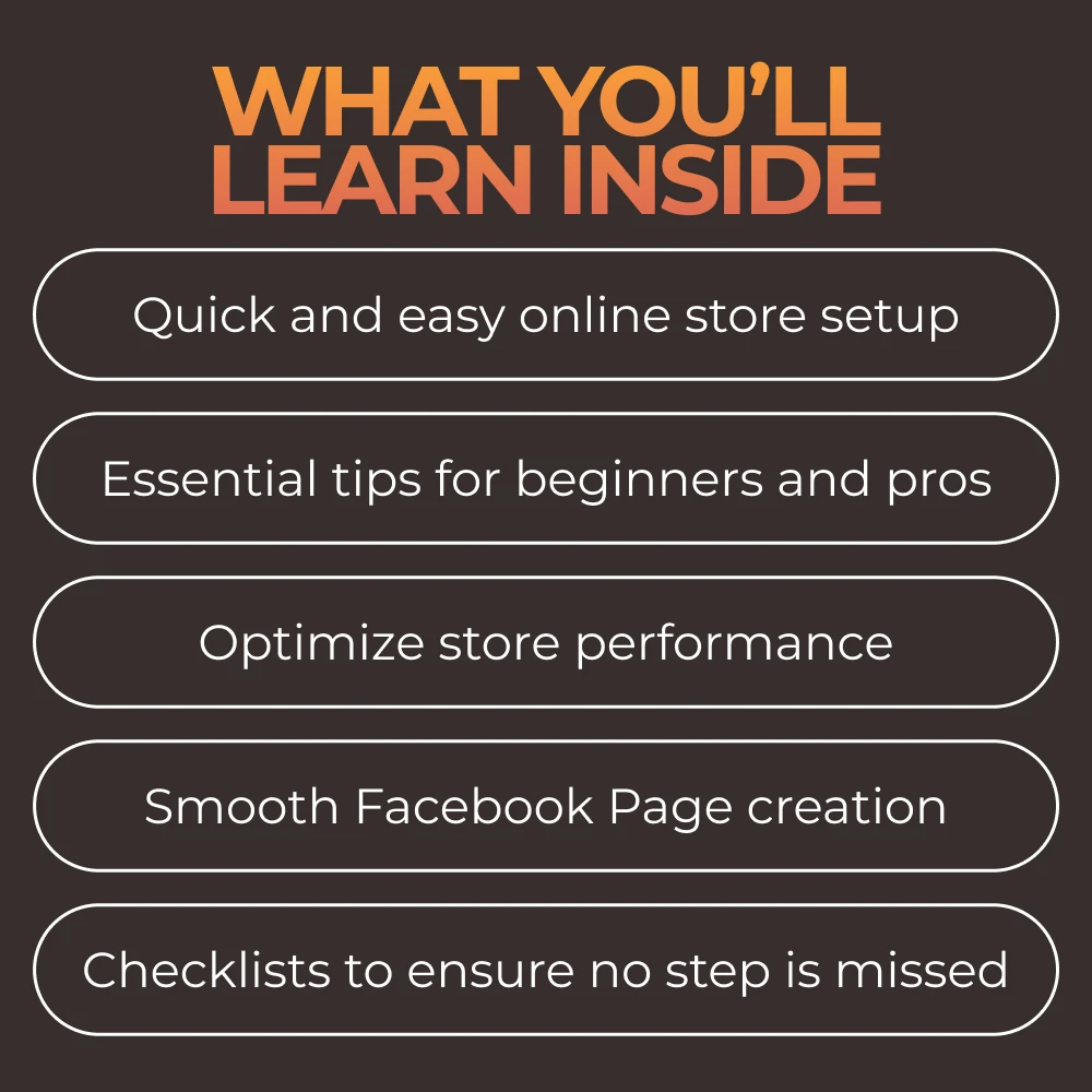 This bundle is perfect for anyone looking to launch an online store, whether you’re a complete beginner or someone with experience who needs a bit of extra guidance. With clear instructions, simple online store setup tips, and practical advice, this bundle stands out from other resources. Instead of offering generic advice, each component is specifically designed to help you manage the complexities of setting up your social store and online presence—without feeling overwhelmed.