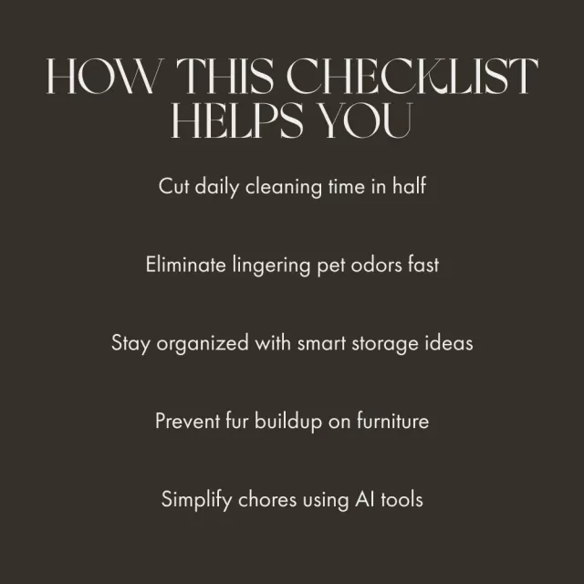 Unlike generic cleaning lists, this pet-specific checklist blends traditional home hacks with smart, AI-powered solutions. It helps you create a routine that’s not only efficient but sustainable—so you spend less time cleaning and more time enjoying your pets. Every tip is realistic, practical, and designed to fit into your daily life.