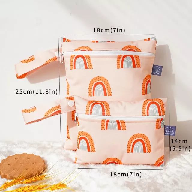 These travel bags are not only practical but also stylish and versatile. They come in two handy sizes – one measuring 10 x 7 inches and the other 5.5 x 7 inches – giving you flexible options for storing different items. The compact design makes them easy to slip into a stroller basket, diaper bag, or suitcase. With their washable fabric, spills and messes are never a problem. Just clean, reuse, and go.