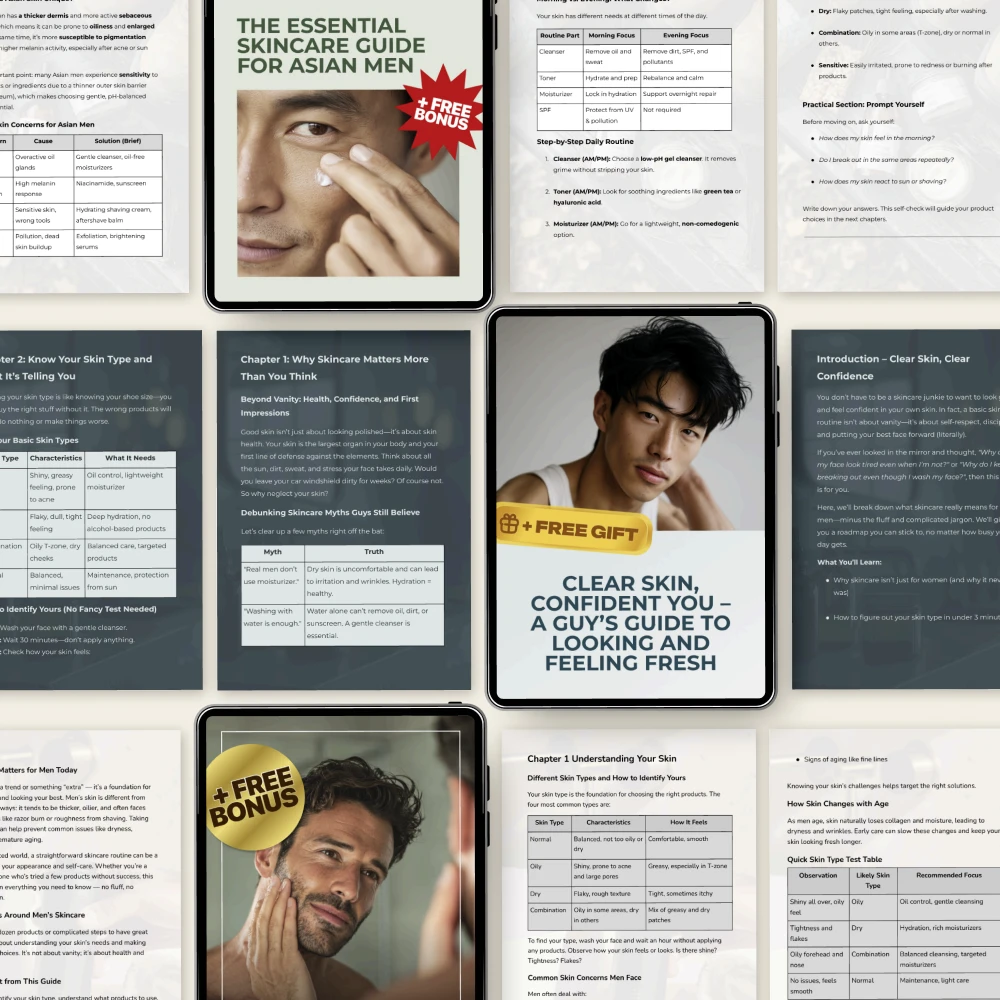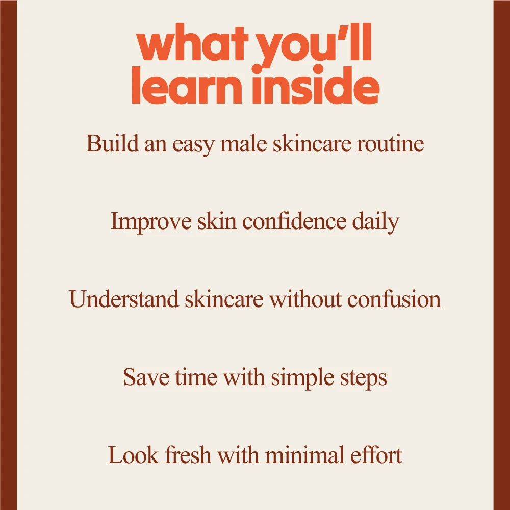 Unlike generic skincare resources, this bundle focuses on clarity, simplicity, and confidence. Instead of pushing trends or endless products, it teaches you how to build an easy male skincare routine that actually works in real life. Each guide complements the others, giving you a complete system rather than random tips.
