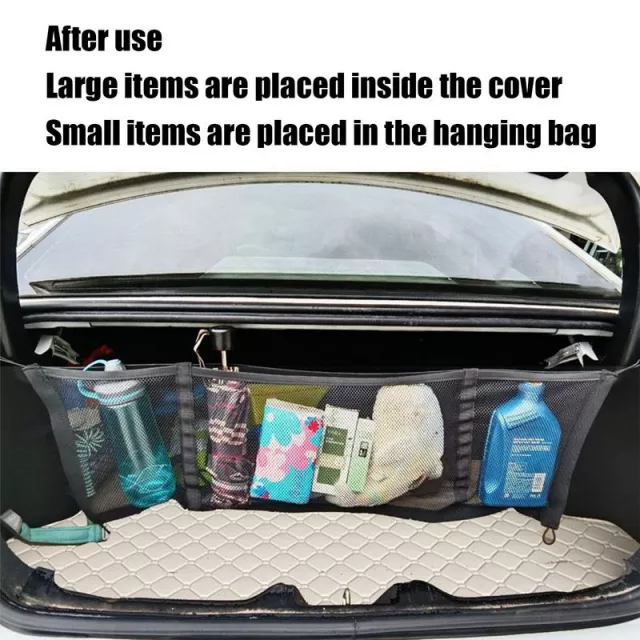 Crafted with strong hexagonal mesh and a tough nylon elastic band, this trunk cargo net is built to withstand daily use. The material is wear-resistant, dust-resistant, and stretchable, meaning it won’t break or deform even when carrying heavy loads. Measuring approximately 13.78 x 35.43 inches, it’s spacious yet compact enough to fit most vehicles, including SUVs, trucks, and sedans.