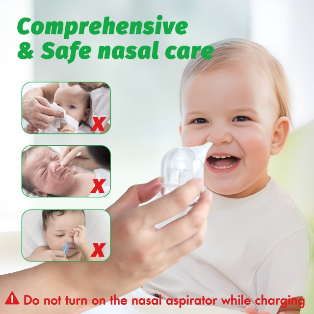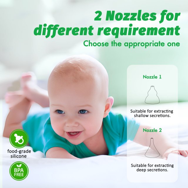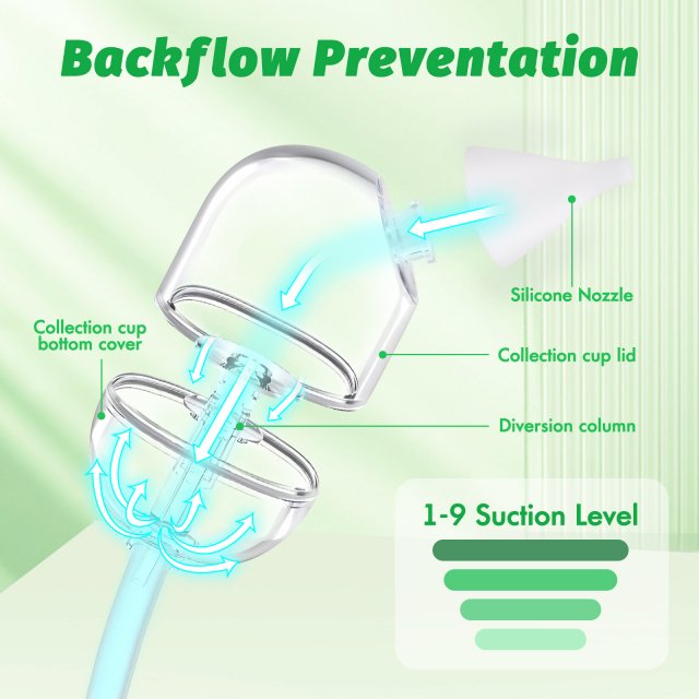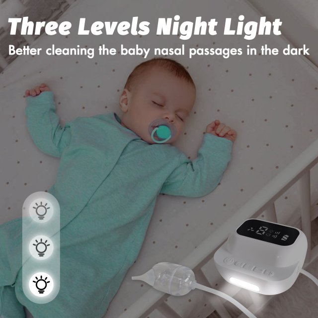• 9 Adjustable Suction Levels: Tailor the suction strength to match your baby’s needs, from light congestion to thicker mucus.