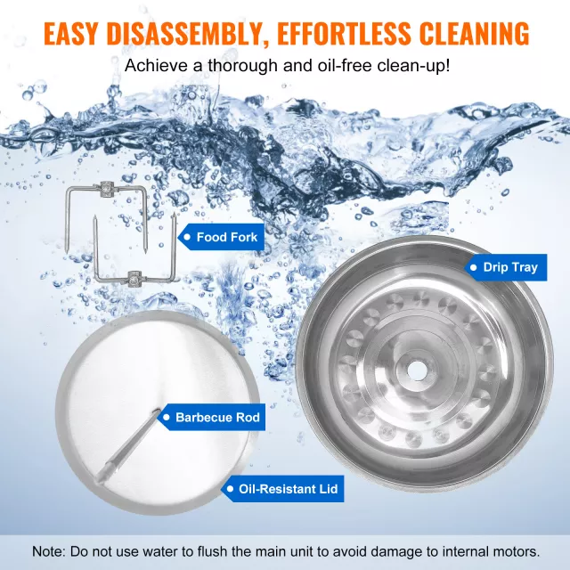• Removable Components – Easy cleaning with detachable drip tray, grill rod, and oil shield.