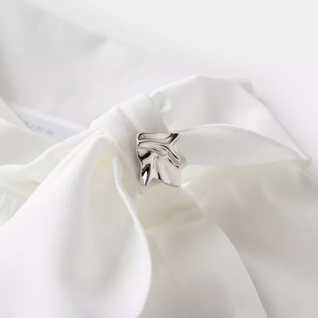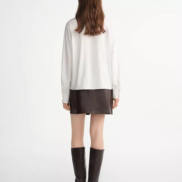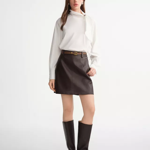 • Modern skew-collar design that adds a stylish twist to classic tops.