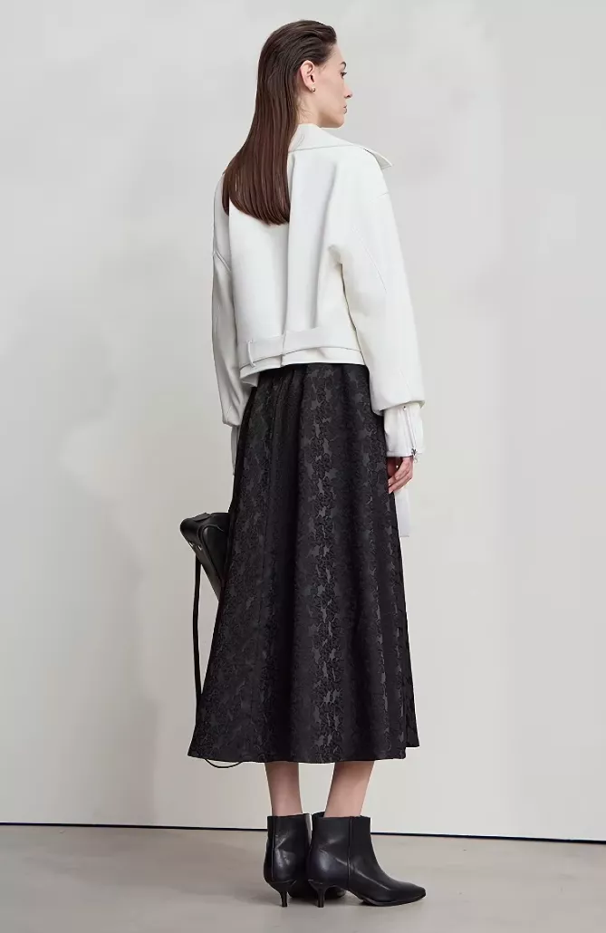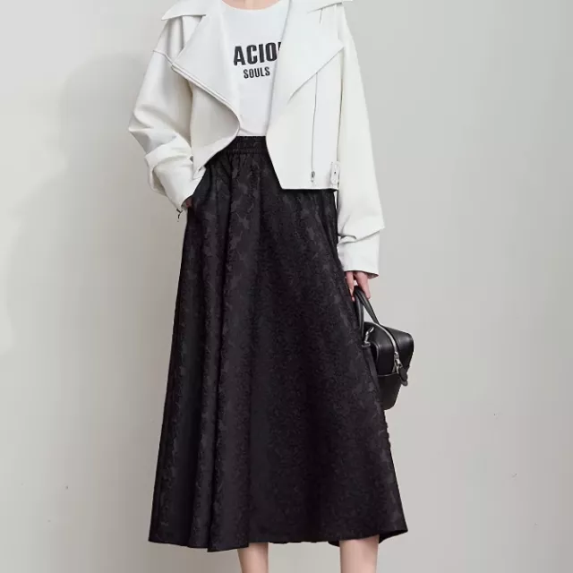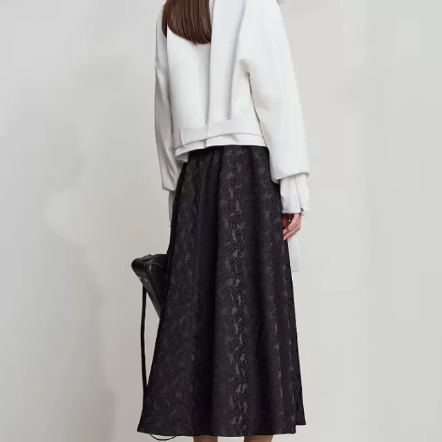 What truly sets this skirt apart is its blend of luxury lace detail and a practical everyday design. The embroidered plant and flower pattern adds depth and femininity, while the A-line silhouette creates a graceful flow that suits different body shapes. Even though the fabric has a non-stretch finish, the elastic waistband ensures a comfortable fit without feeling tight.