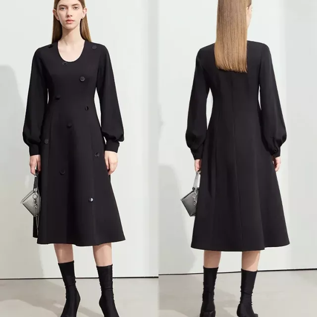 This dress is ideal for autumn days and cooler weather thanks to its full-length sleeves and cozy knit fabric. Its elegant design also makes it a fantastic choice for social events, casual get-togethers, or even a chic daytime outing. With a versatile color palette and flattering silhouette, it effortlessly blends style and comfort for the modern woman.