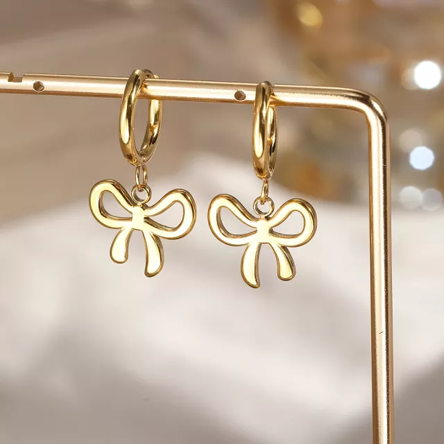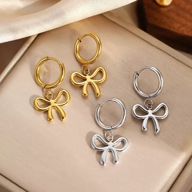 These earrings stand out for their blend of classic style and playful detail. The bow pendant design is feminine and romantic, while the geometric styling adds a contemporary edge. Made from high-quality stainless steel, they promise long-lasting wear without losing their shine, even with frequent use. Their lightweight feel ensures you can wear them from morning to night without discomfort, making them ideal for women who love beauty without compromise.