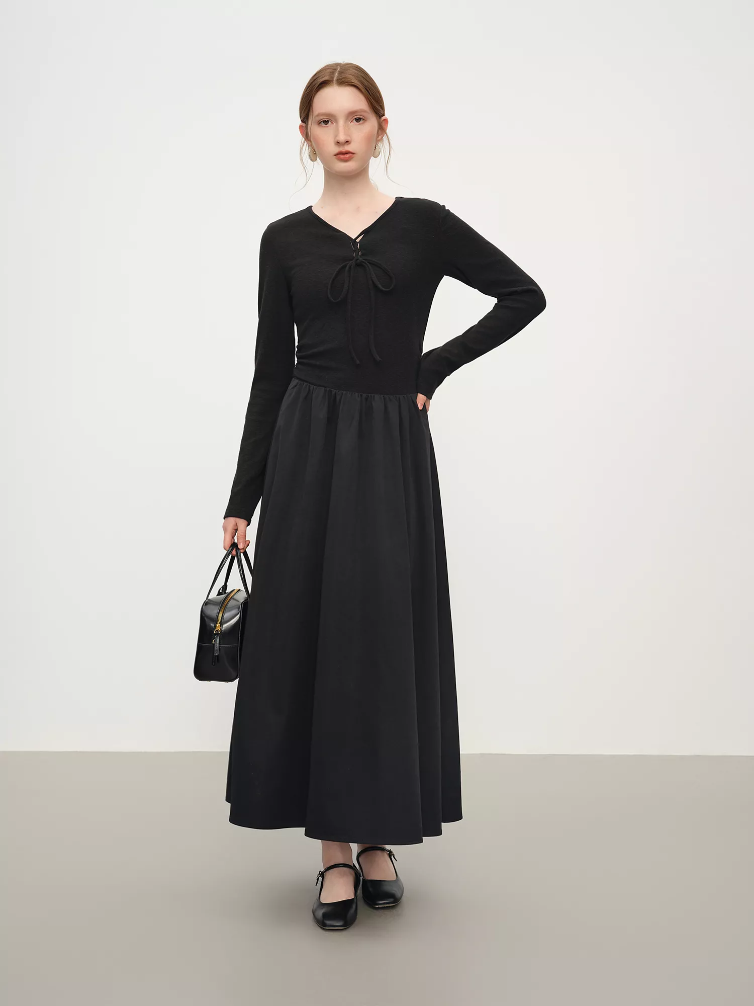 • Elegant V-neck and bow detail add subtle sophistication to your outfit.