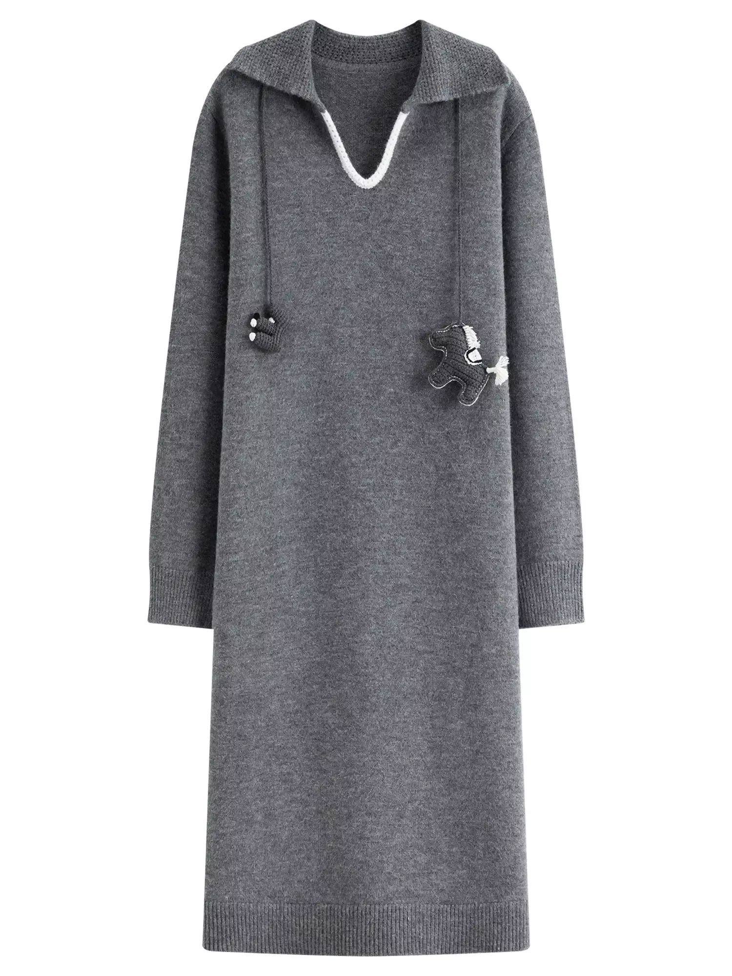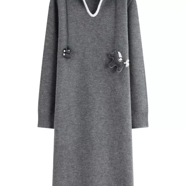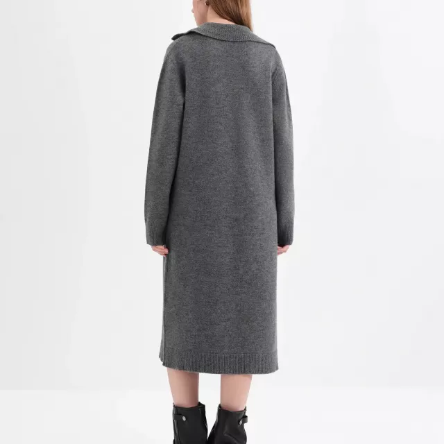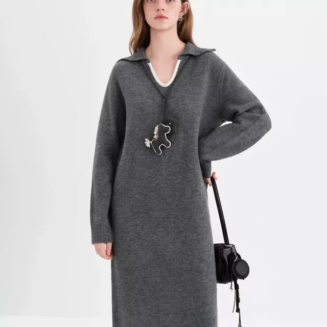 What truly sets this dress apart is its balance of comfort and sophistication. The knitted texture adds warmth and softness, while the three-dimensional pendant detail brings a unique fashion touch you won’t find in basic winter dresses. The turn-up collar enhances its structured look, making it both professional and stylish.