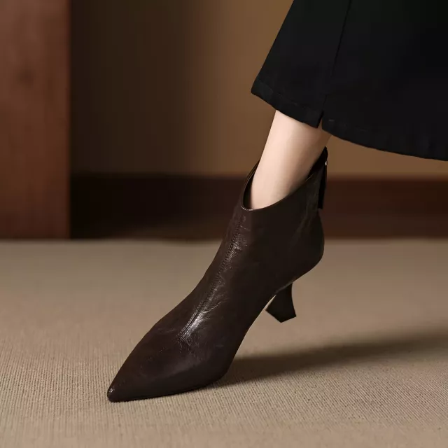 Step into confidence with these modern pointed toe ankle boots, designed for women who love a clean, elegant look without sacrificing comfort. Made with smooth genuine leather and finished with a sleek silhouette, these boots instantly elevate any outfit. Whether you’re heading to the office, a dinner date, or a casual city stroll, they bring a touch of polish to your everyday style.