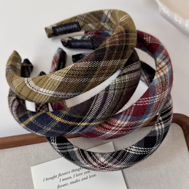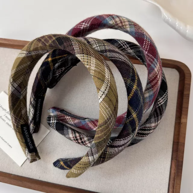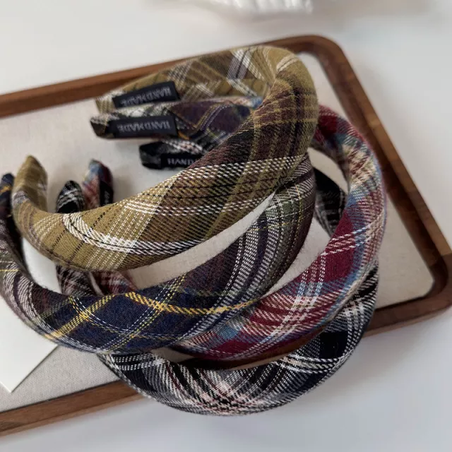 Elegant Retro Plaid Wide Headband – Korean Style Hair Accessory