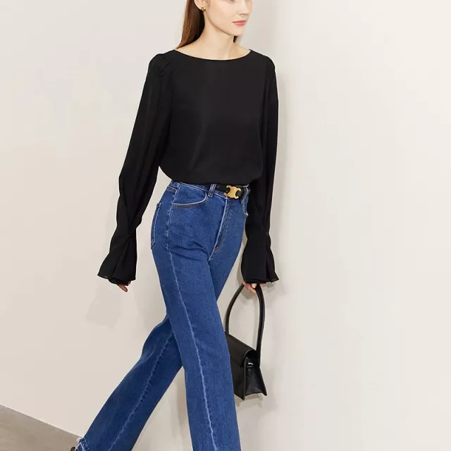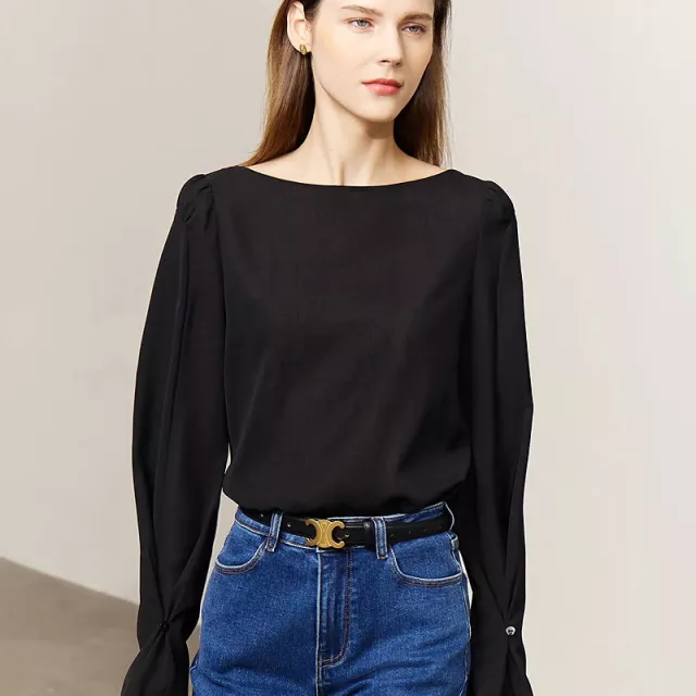 Transform your office look with this sophisticated and versatile blouse, designed to add a touch of elegance to your everyday style. With its solid color, slash neck design, and flare sleeves, this blouse exudes timeless beauty and effortless charm. Perfect for a busy workday or a casual outing, this piece is a must-have for any woman looking to enhance her wardrobe.