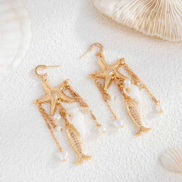Add these elegant starfish conch tassel drop earrings to your collection and embrace the vibrant energy. Whether as a gift or a personal treat, these earrings are a must-have to brighten your wardrobe and elevate your fashion game. Order now and bring a touch of beachside glamour wherever you go.