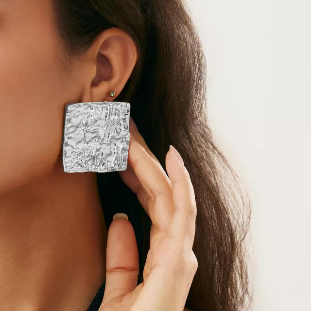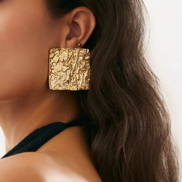 These textured square studs are a must-have accessory for women who appreciate style and sophistication. Their versatile design pairs effortlessly with any outfit, from a chic casual look to a glamorous evening dress. Add a touch of vintage elegance to your jewelry collection and elevate your everyday style.
