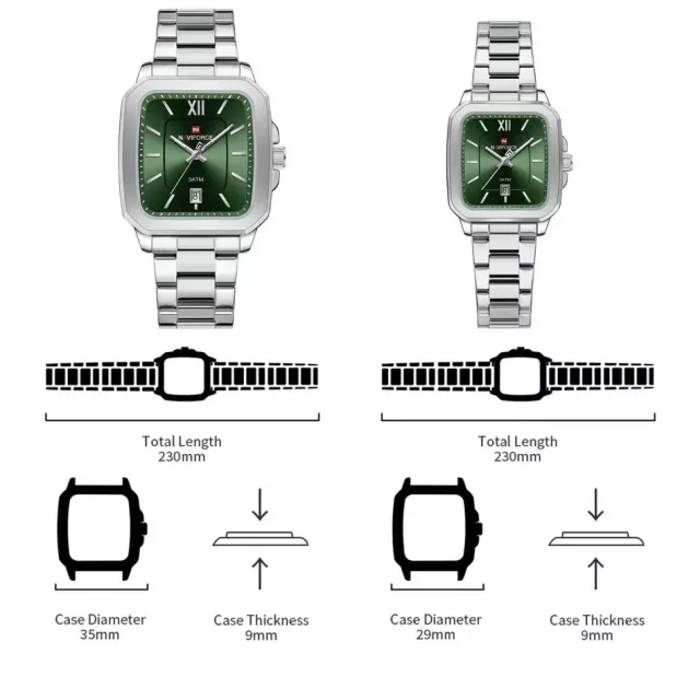 Unlike ordinary watches, this couple’s set is designed for both men and women with perfectly balanced sizes – 1.38 in (men) and 1.14 in (women) dial diameters – so you can wear matching timepieces without compromising comfort or style. The refined craftsmanship, combined with a versatile look that fits fashion, casual, sport, or business occasions, makes it more than just a watch – it’s a shared statement of elegance.