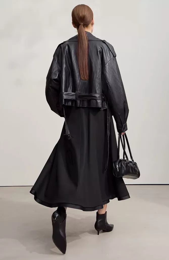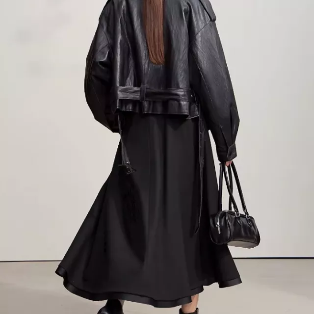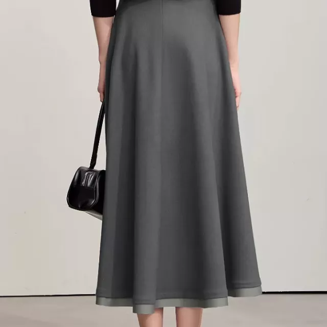 What sets this skirt apart is its balance of comfort and sophistication. The A-line design creates a flowy yet professional vibe, making it ideal for daily commuting. The patchwork detail adds a unique touch that makes the skirt stand out without losing its clean, minimalist appeal. It’s designed for women who appreciate effortless style that transitions easily from desk to dinner.