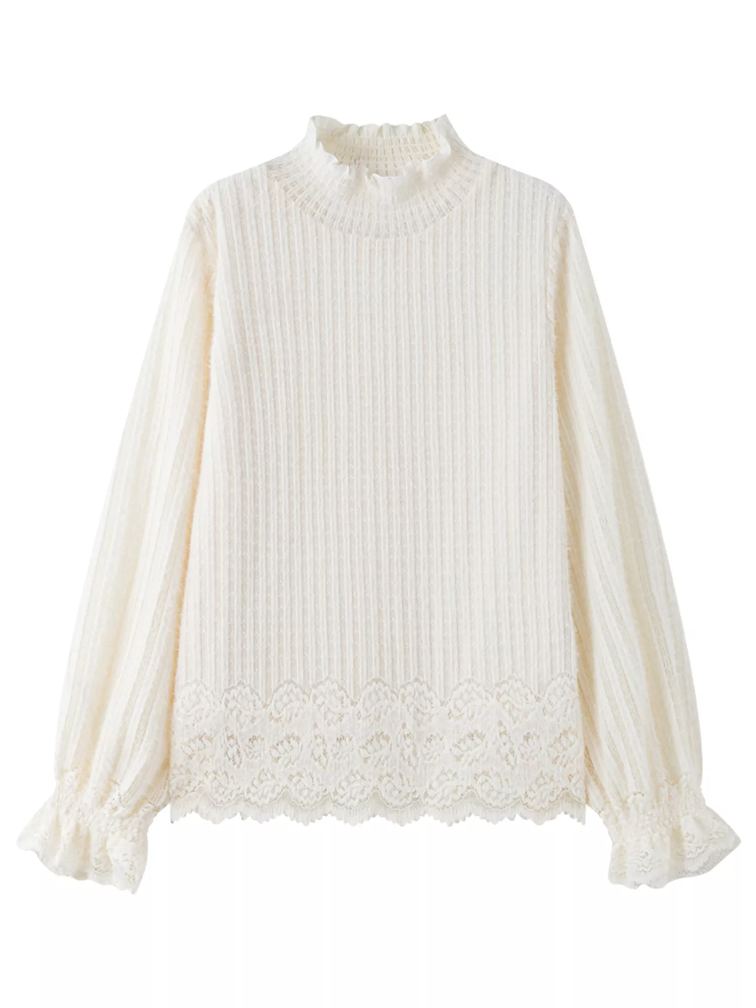 This top is more than just a winter essential – it is designed to make you feel confident and elegant every day. Its loose fit and soft, stretchable fabric make it ideal for layering over jeans, skirts, or leggings. The subtle lace accents elevate your look effortlessly, giving you a delicate, fairy-like charm without the fuss. Whether you are heading to work, meeting friends, or enjoying a cozy day indoors, this versatile pullover keeps you stylish, warm, and comfortable.