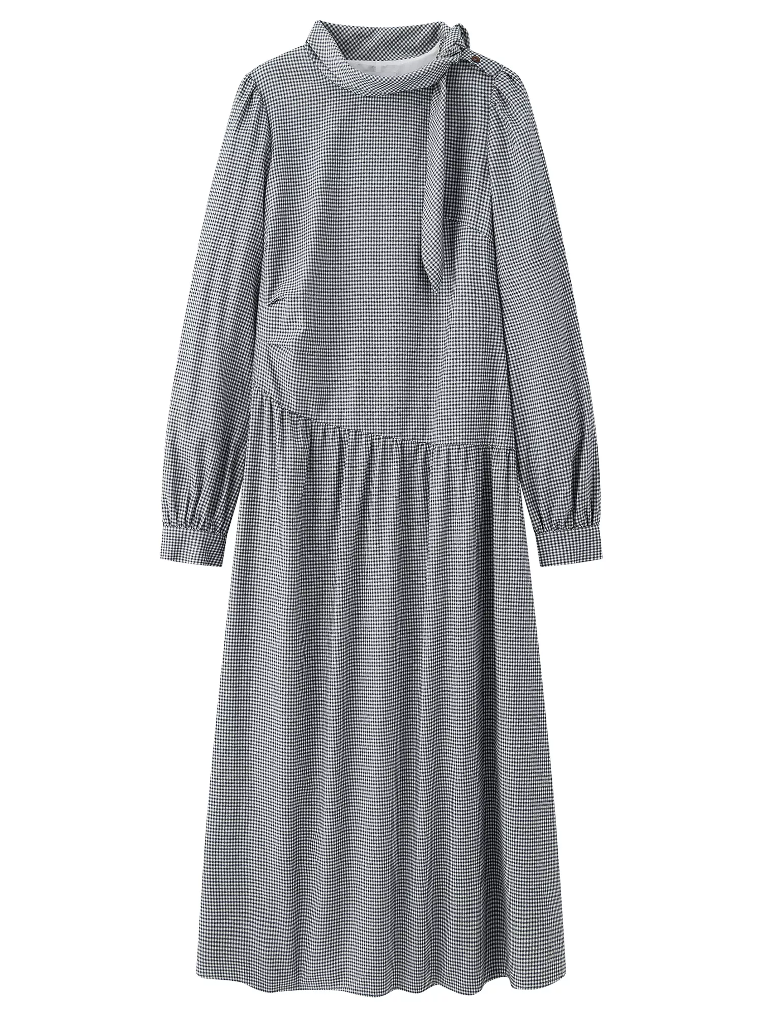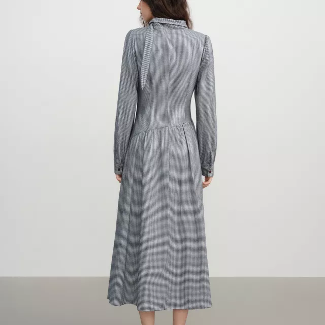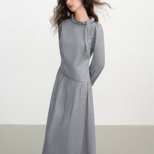 Its blend of classic French-inspired design and modern winter comfort makes this piece stand out. The soft cotton fabric feels gentle on the skin, the plaid pattern adds a stylish touch, and the retro neckline gives you a refined, vintage look. This dress is best used during the autumn and winter seasons when you want warmth, coverage, and elegance all in one.