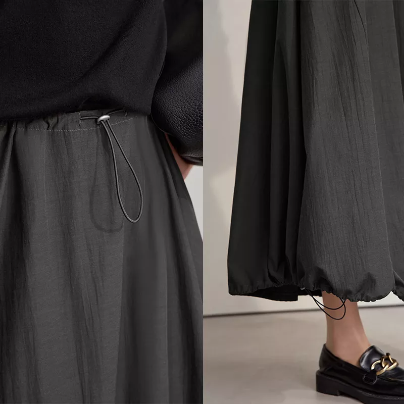 Designed with a natural elastic waist, this skirt ensures a comfortable fit without compromising style. The woven fabric with delicate tatting details adds subtle texture, giving the skirt a refined and unique look. Its loose fit allows freedom of movement, making it an ideal choice for casual gatherings, office wear, or cozy weekends at home. The soft, breathable fabric keeps you comfortable, even during long days, while the shirring accents enhance the skirt’s visual appeal.