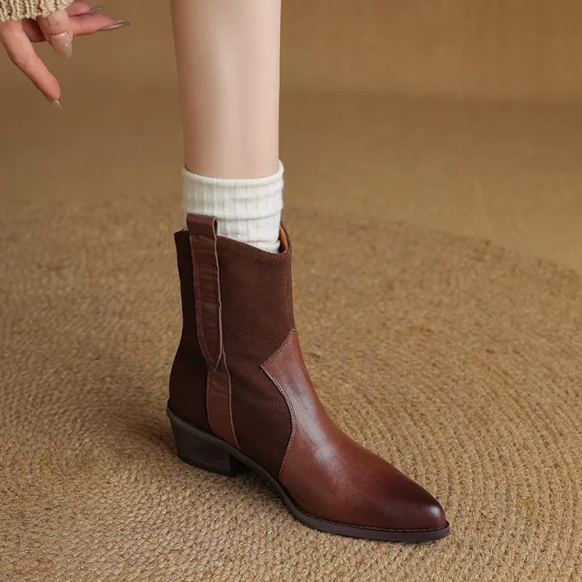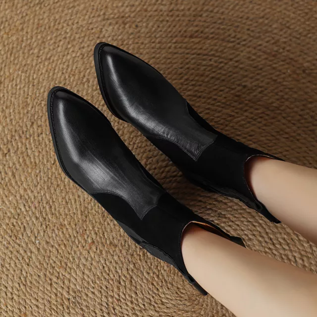 Elevate your wardrobe with these stunning ankle boots designed for women who value style and comfort. Crafted from premium genuine cow leather, these boots offer a luxurious look and feel that lasts. The sleek pointed toe combined with a sophisticated chunky heel makes them perfect for both office meetings and evening outings. With a high-quality short plush lining and insole, your feet stay cozy even on chilly days. These boots are true to size and easy to slip on, giving you effortless elegance in seconds.