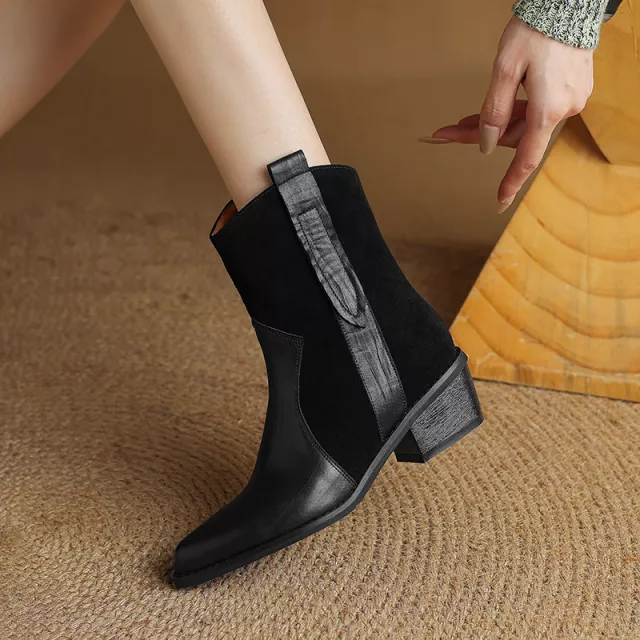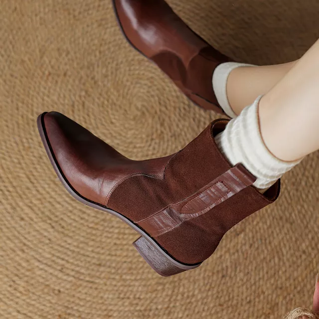 What sets these ankle boots apart is their combination of timeless design and practical comfort. Unlike ordinary boots, the short plush insole keeps your feet cushioned all day, while the genuine leather upper gives you a polished, professional look. The square chunky heel balances elegance with stability, making them ideal for walking around the office or strolling in the city. These boots seamlessly blend retro charm with modern sophistication, ensuring you stand out effortlessly wherever you go.