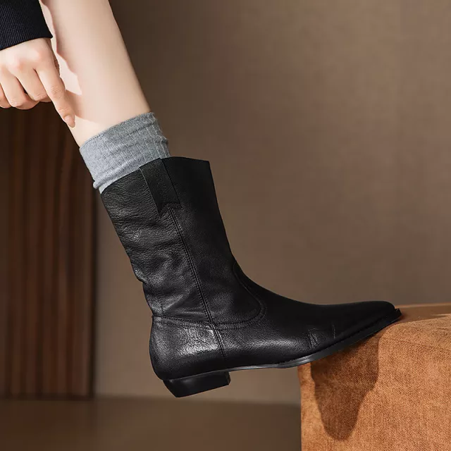 These boots keep your feet cozy while ensuring a sleek and polished look. The soft sheepskin insole cushions your steps, while the genuine leather lining maintains warmth and breathability. Slip them on effortlessly with the convenient slip-on closure and enjoy an instant style upgrade that pairs beautifully with dresses, skirts, or tailored pants.