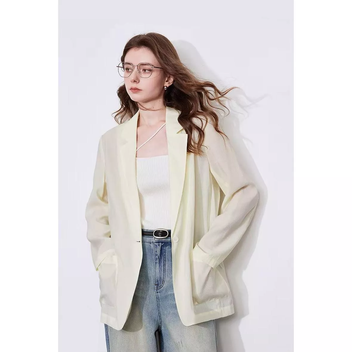 This blazer is designed to blend timeless style with modern sensibilities. The jacquard pattern adds a subtle texture that enhances its sophisticated appearance, while the button decoration elevates its elegance. The loose fit allows you to move freely and comfortably throughout the day without feeling restricted. Its breathable, lightweight fabric ensures that you’ll stay comfortable no matter where your busy day takes you.