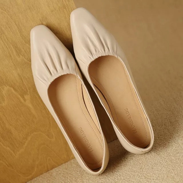Every pair is crafted from high-quality materials to ensure durability and all-day comfort. The upper is made from soft sheepskin leather, giving a luxurious feel that molds to your feet. Inside, pigskin lining keeps your feet breathable, while the cow leather insole provides gentle support with each step. With a modest 0.8-inch heel, these flats offer subtle lift without sacrificing comfort.