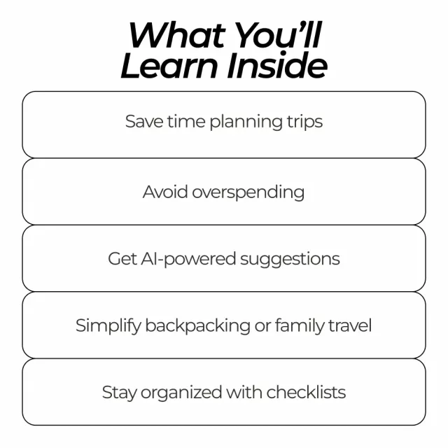 Unlike other travel guides that only offer tips or generic budgets, this 3-in-1 bundle leverages AI that creates a travel budget for you, delivering personalized insights and actionable strategies. It combines practical advice, step-by-step guides, and AI-powered resources to make your travel planning smarter, faster, and more accurate.