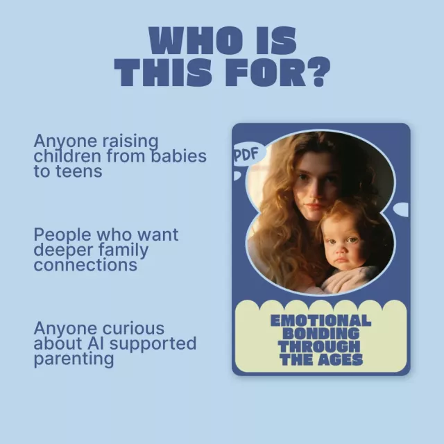 This guide is ideal for parents, caregivers, educators, and anyone supporting children’s emotional growth. Unlike generic parenting resources, Emotional Bonding Through the Ages combines developmental insight with practical action and modern tools. The inclusion of AI-based prompts and tracking ideas makes it especially unique, bridging emotional intelligence with today’s technology in a responsible, human-centered way.