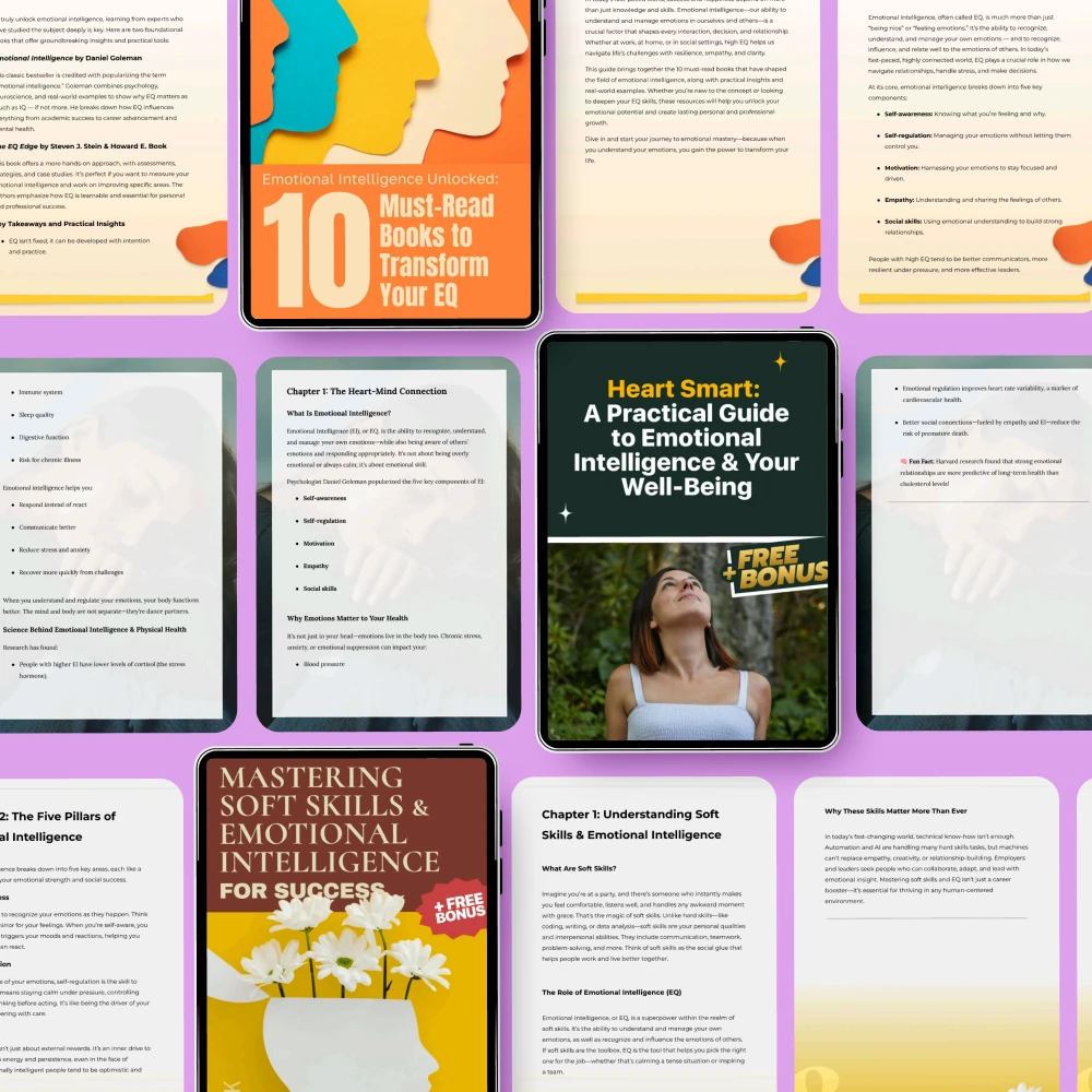 Unlike other digital resources, the Emotional Intelligence Foundations Pack doesn’t just provide theory—it’s designed to give you tangible, real-world tools that you can implement immediately. The combination of eBooks, guides, and checklists makes it one of the most comprehensive and practical emotional intelligence resources available. The handpicked books and strategies are proven to help you understand what is emotional intelligence and how to develop it for lasting success in all areas of life.