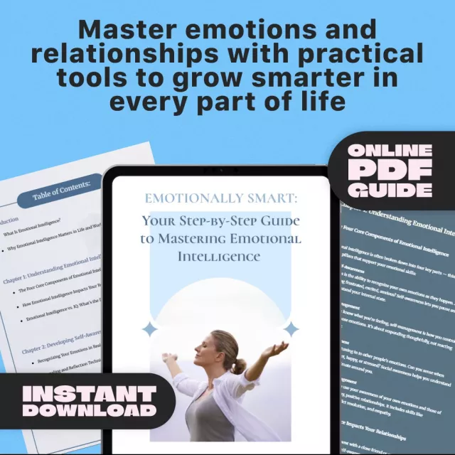 Ready to take charge of your emotions and transform the way you connect with yourself and others? Emotionally Smart: Your Step-by-Step Guide to Mastering Emotional Intelligence is your go-to digital guide for building the essential skills that make up emotional intelligence. Whether you’re navigating professional challenges, improving personal relationships, or simply striving to grow as a person, this practical and insightful guide will help you develop the awareness and emotional control you need to thrive.