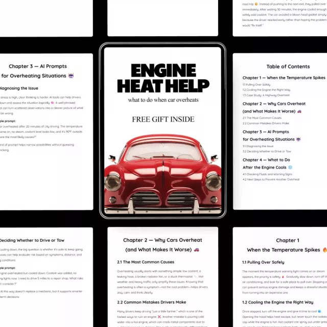 Engine Heat Help | Car Overheating Emergency Guide, AI Prompts, Engine Cooling Checklist, Roadside Safety eBook