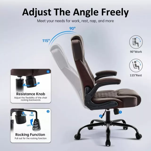 Backed by thoughtful ergonomic design, this chair supports your spine with built-in lumbar support to ease pressure on your back and hips. Adjust the backrest angle from 90° to 115° and toggle between rocking and locking modes to match your work or relaxation needs. The seat height is fully adjustable to help you find the perfect sitting position, enhancing focus and reducing fatigue.