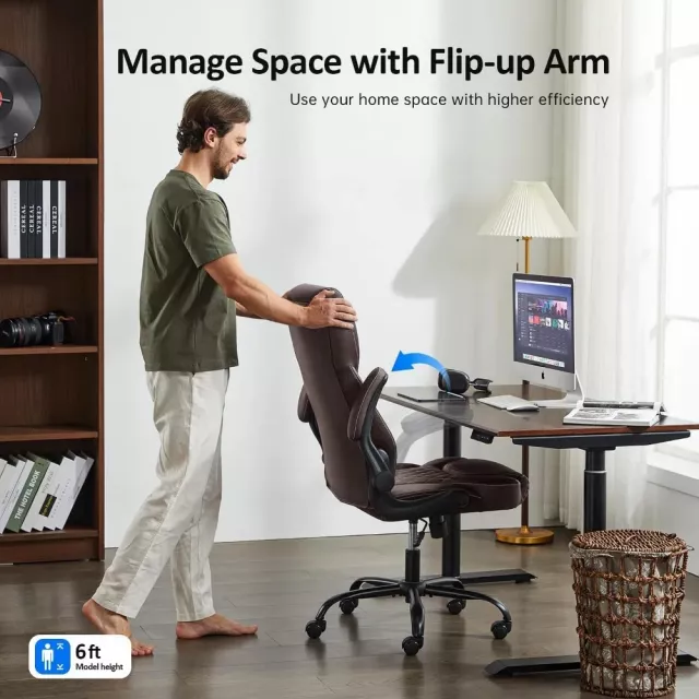 Perfect for home offices, professional workspaces, or gaming setups, this chair adapts to your routine with its practical flip-up armrests. Need more space? Simply rotate the arms up to 90° and slide the chair under your desk. With smooth-rolling casters and a sturdy metal frame, it moves easily and supports up to everyday use without sacrificing style.