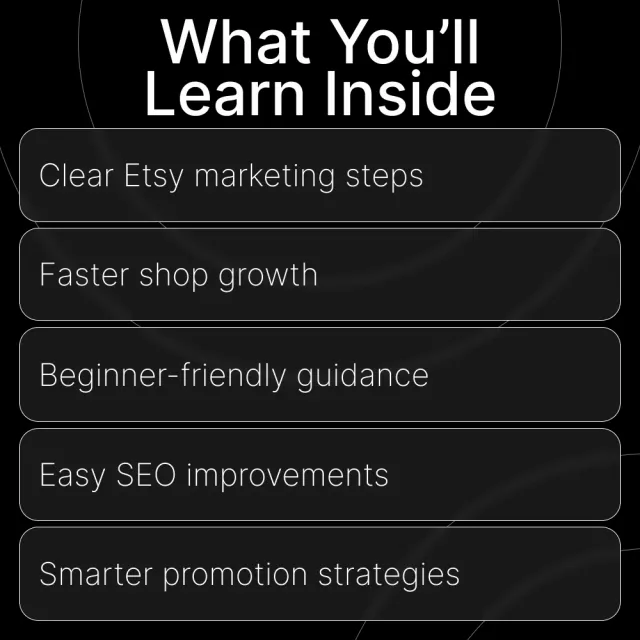 • Perfect for total beginners who need a simple, easy-to-follow Etsy marketing plan.