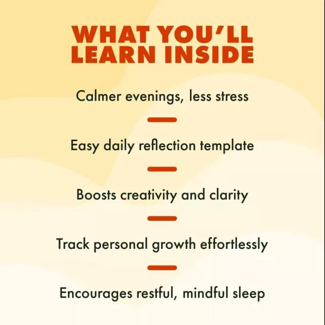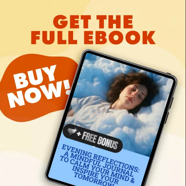 This eBook is for anyone seeking a calmer evening routine—whether you’re new to journaling, an experienced mindfulness practitioner, or someone who simply wants to reflect more intentionally. If you’re tired of ending your day with a racing mind, this mindful evening reflection journal offers you a structured yet flexible way to bring peace into your nights.