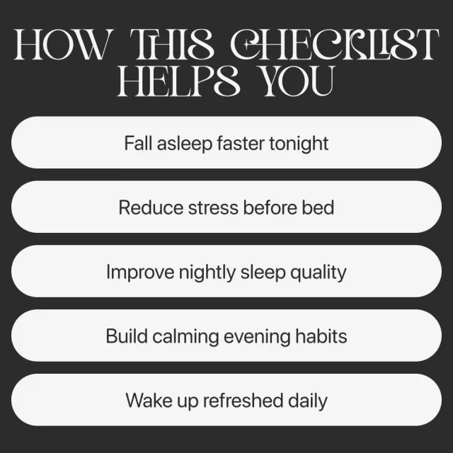 This thoughtfully designed digital checklist guides you through a proven 5-step wind-down process that supports your mind and body before bedtime.