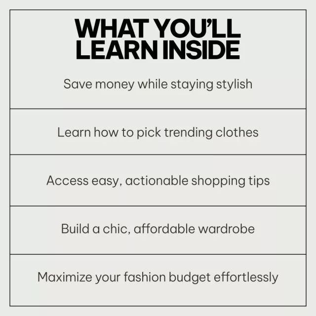 What makes this bundle stand out is the combination of practical tips and actionable advice, all designed to help you transform your look without the need for expensive shopping sprees. These budget style hacks empower you to make smarter choices, shop strategically, and create looks that radiate luxury—all while sticking to a budget.